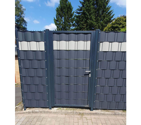 Die Streifen sind passgenau geschnitten und passen exakt in einen Gittermattenzaun.