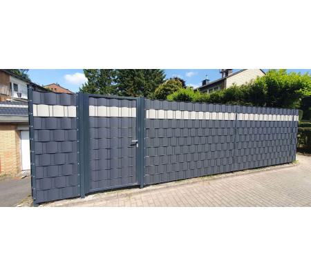 Die Streifen sind passgenau geschnitten und passen exakt in einen Gittermattenzaun.