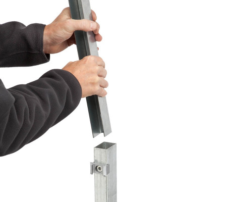 Unsere Pfostenverstärkung wird einfach in den vorhanden Zaunpfosten 60/40 mm (nicht für Eckpfosten geeignet) geschoben, der dadurch auch stärkeren Windbelastungen standhält. Die Pfostenverstärkung ist natürlich auch für den nachträglichen Einbau in den Zaunpfosten 60/40mm geeignet.